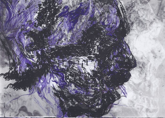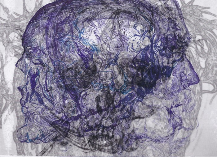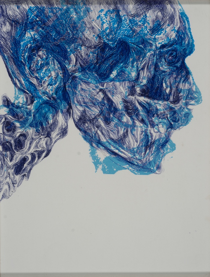 Crâne et double profil (2012) - Ball-point pen and print on photographic paper -33 x 43