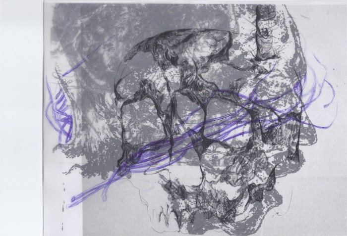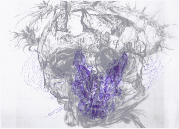Crâne et os (2012) - Ball-point pen and print on photographic paper - 33 x 43