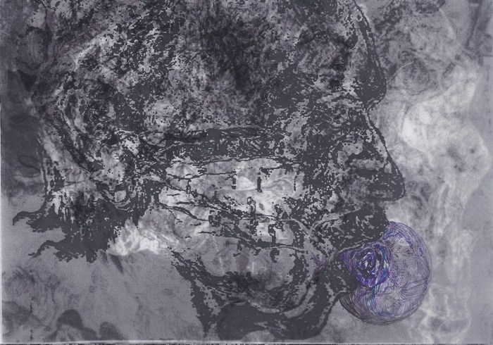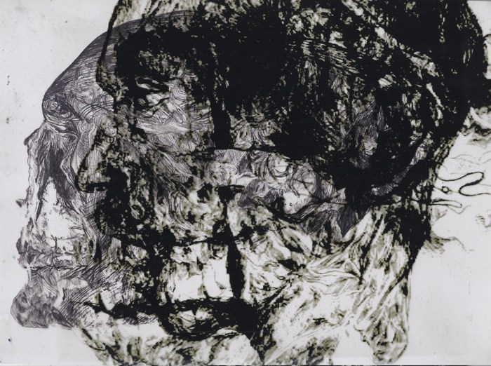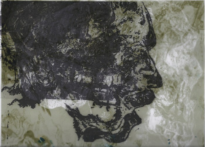 Profil et crâne (2012) - Print and scraping on photographic paper - 33 x 43
