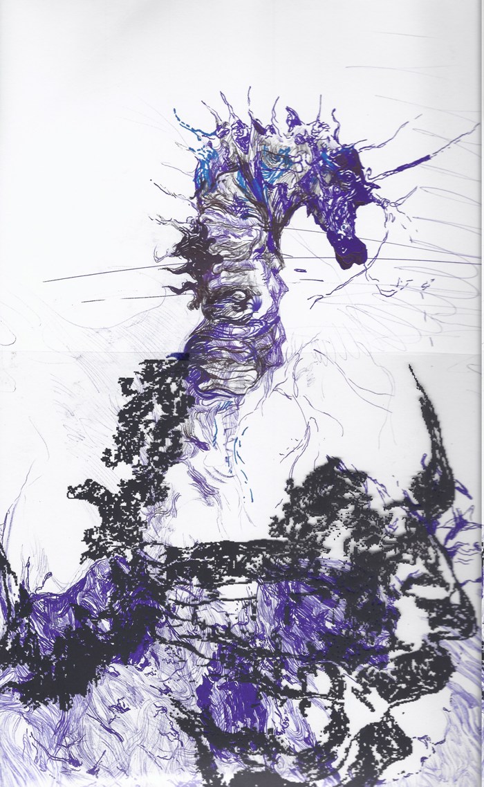 Profil et hippocampe (2012) - Print, ball-point and felt-tip pen on paper - 42 x 30