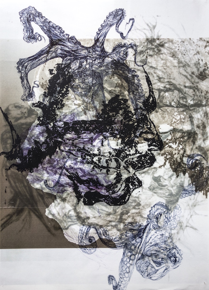 Profil à la pieuvre (2012) - Print on two canvas sheets and ball-point pen - 240 x 120