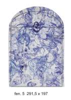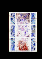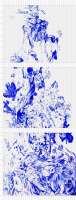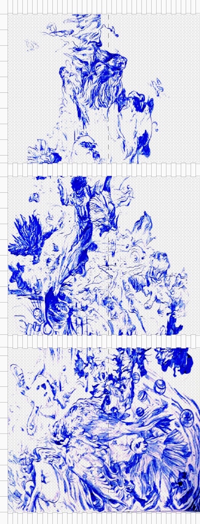 Spray and blue paint on white tiles
